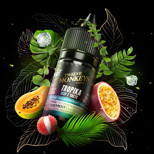 Flavour Beast x Twelve Monkeys E-Liquid Series, a landmark collaboration that brings together two of Canada’s most trusted names in vaping. This launch features six iconic flavours, each mixed to deliver layered fruit complexity with a cool, refreshing finish. Available in 30mL bottles with 20mg/mL nic salts and a 40VG/60PG ratio, these e-liquids are tailored for open-pod systems